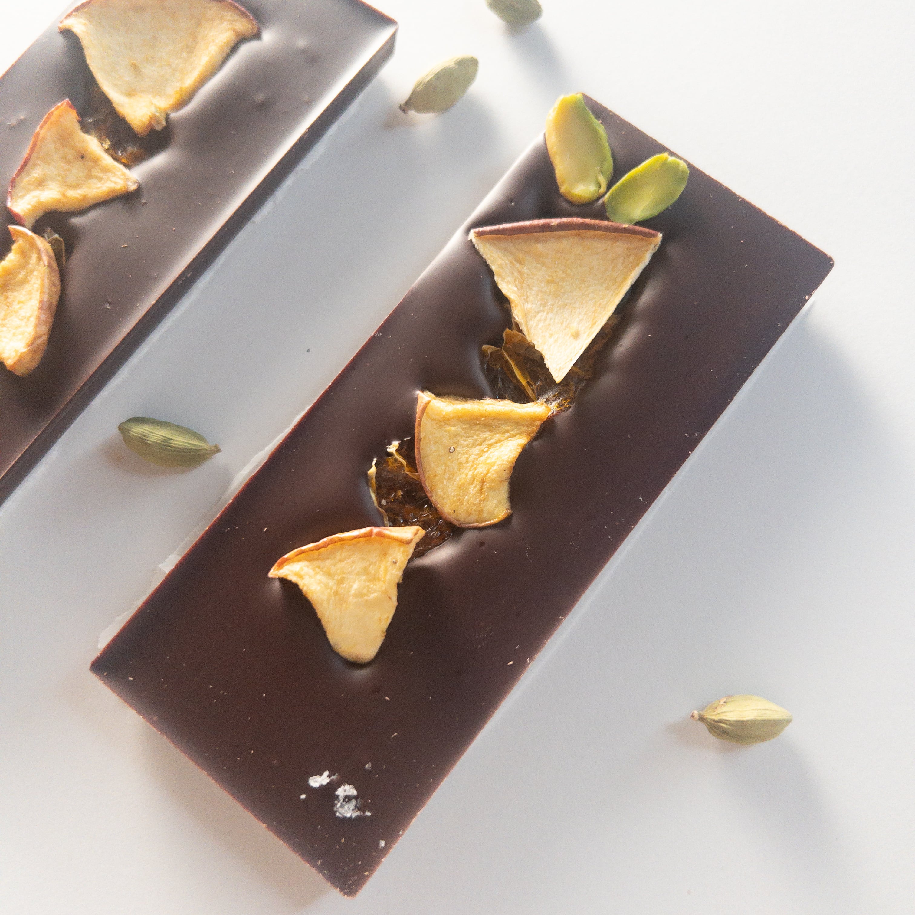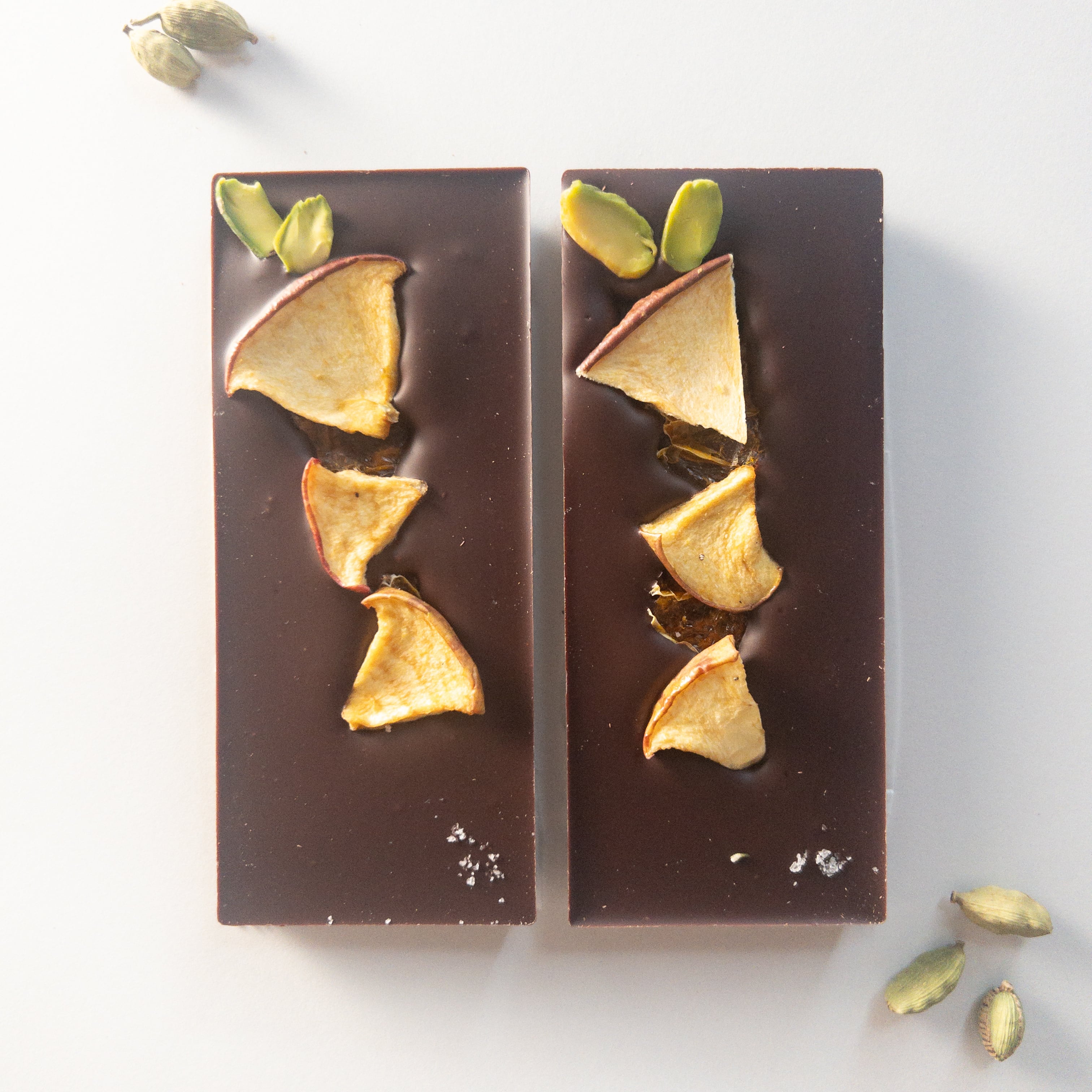 りんごのやさしい甘みと、カルダモンの上品な香りを重ねたRawチョコレート。